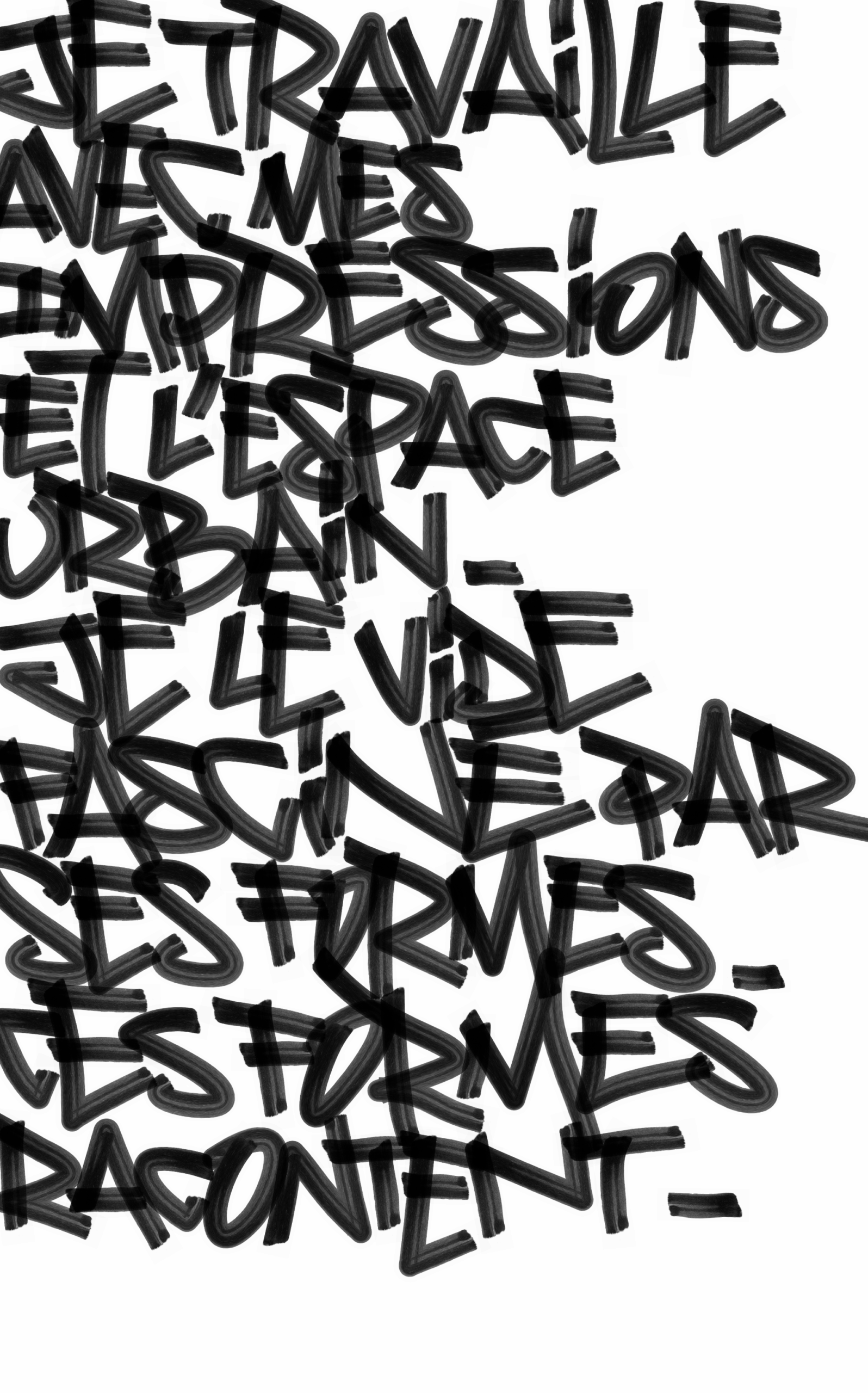 Mes photographies, tirées de mes errances urbaines autant que de mon point de vue d’urbain et de la panoplie des privilèges qui me situent, cherchent une esthétique qui aurait une portée critique sur nos espaces. Elles cherchent leur fluidité, leur ligne de désir.